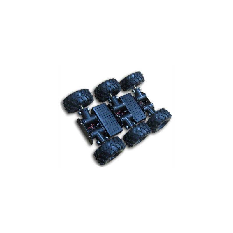 Le châssis Wild Thumper 6 roues motrices de DAGU est une plateforme robotique en aluminium dotée de 6 moteurs à courant continue (CC) et de 6 grosses roues 4x4. Il est particulièrement conçu pour évoluer à l'extérieur sur tous types de terrain même accidenté. 6x moteurs à rapport de réduction 34:1